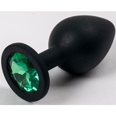 Анальная Пробка силиконовая черная с зеленым стразом,9/4,2см