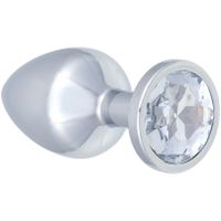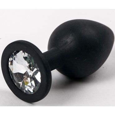 Анальная Пробка силиконовая черная с прозрачным стразом, 9/4,2см