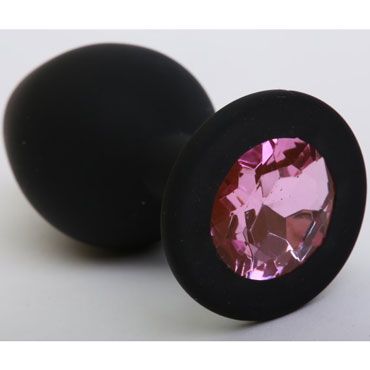 Анальная Пробка силиконовая черная с розовым стразом 9/ 4,2см