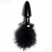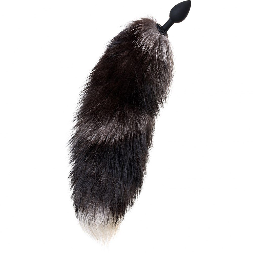 Анальная пробка с хвостом чернобурой лисы, размер S, силикон, черная