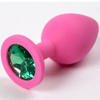 Анальная пробка силиконовая розовая с зеленым стразом, 9/4,2см