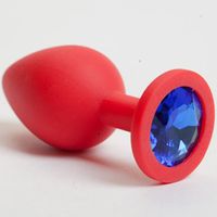 Анальная Пробка силиконовая красная с синим кристаллом, 9/4,2см