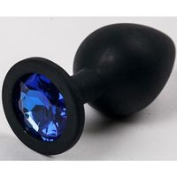 Анальная Пробка силиконовая черная с синим стразом 9/ 4,2см
