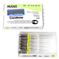 К-файлы, дрильбор ручной Мани (Mani K-Files) №08, длина 25 мм, ISO-08, 6 шт/упаковка, Япония (Mani, Inc.) 0322002М