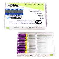 К-файлы, дрильбор ручной Мани (Mani K-Files) №10, длина 25 мм, ISO-10, 6 шт/упаковка, Япония (Mani, Inc.) 0322003М