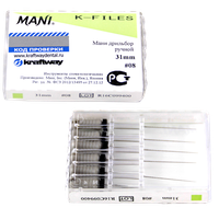 К-файлы, дрильбор ручной Мани (Mani K-Files) №08, длина 31 мм, ISO-08, 6 шт/упаковка, Япония (Mani, Inc.) 0324002М
