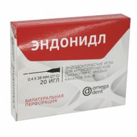 Игла эндодонтическая "Эндонидл" для антисептической обработки корневых каналов зубов, размер 0,4*38 мм, 20 шт/упак., Россия ("НКФ Омега-Дент") E003370