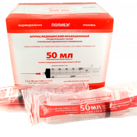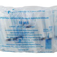 Шприц 50 мл (см3) с иглой 18G (1,2*40 мм) одноразовый стерильный, 20 шт/упаковка, П/Э, Китай (Changzhou Jinlong Medical Plastic Appliance Co. Ltd.)