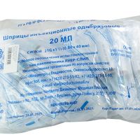 Шприц 20 мл (см3) с иглой 21G (0,80*40 мм) одноразовый стерильный, соединение luer lok, П/Э, 40 шт/упаковка, Китай (Changzhou Jinlong Medical Plastic Appliance Co. Ltd.)