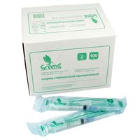 Шприц 2 мл (см3) с иглой 23G*1 1/4 (0,6*30 мм) Greens одноразовый стерильный, 100 шт/упаковка (картонная коробка), Китай (Jiangxi Hongda Medical Equipment Group Ltd.)