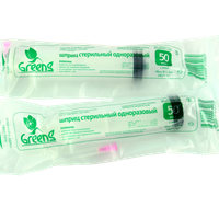 Шприц 50 мл (см3) с иглой 20G*1 1/2 (0,9*38/1,2*40 мм) одноразовый (Greens) стерильный, 45 шт/ картонная упаковка, Китай (Jiangxi Hongda Medical Equipment Group, Ltd)