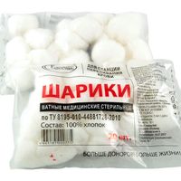 Шарики ватные №20 (10 г) медицинские стерильные (для станций переливания крови), Россия (Емельянъ Савостинъ. Ватная Фабрика)