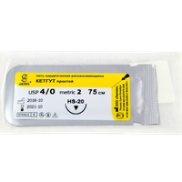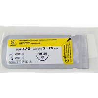 Кетгут простой МР(2), USР(4/0), длина 75 см, игла колющая HR-20, 1/2 окружности, Россия (ООО "Линтекс") 17020A200750