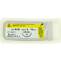 Кетгут простой МР(2), USР(4/0), длина 75 см, игла колющая HR-25, 1/2 окружности, Россия (ООО "Линтекс") 17020A250750