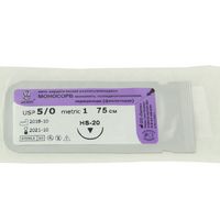 Моносорб фиолетовый, МР(1) USP(5/0), длина 75 см, игла колющая HR-20, 1/2 окружности, Россия (ООО "Линтекс") 12010A200750