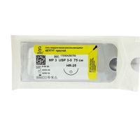 Кетгут простой МР(3), USР(3/0), длина 75 см, игла обратно-режущая HS-20, 1/2 окружности, Россия (ООО "Линтекс") 17030B200750