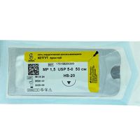 Кетгут простой МР(1,5), USР(5/0), длина 50 см, игла обратно-режущая HS-20, 1/2 окружности, Россия (ООО "Линтекс") 17015В200500