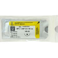 Кетгут простой МР(3), USР(3/0), длина 50 см, игла обратно-режущая HS-20, 1/2 окружности, Россия (ООО "Линтекс") 17030B200500