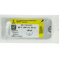 Кетгут простой МР(3), USР(3/0), длина 50 см, игла колющая HR-20, 1/2 окружности, Россия (ООО "Линтекс") 17030А200500