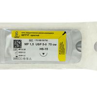 Кетгут простой МР(1,5), USР(5/0), длина 75 см, игла обратно-режущая HS-15, 1/2 окружности, Россия (ООО "Линтекс") 17015В150750