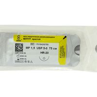 Кетгут простой МР(1,5), USР(5/0), длина 75 см, игла колющая HR-20, 1/2 окружности, Россия (ООО "Линтекс") 17015A200750