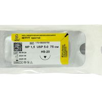 Кетгут простой МР(1,5), USР(5/0), длина 75 см, игла обратно-режущая HS-20, 1/2 окружности, Россия (ООО "Линтекс") 17015В200750