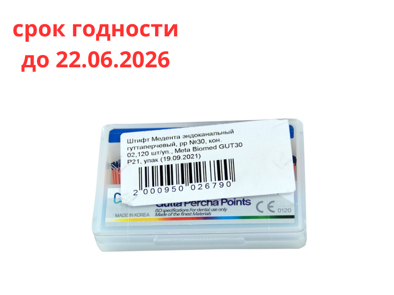 Штифт Медента эндоканальный гуттаперчевый, размер №30, конусность стандартная 02, 120 шт/упаковка, Республика Корея (Meta Biomed Co., Ltd.) GUT30 P21