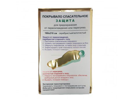 Принцип действия: При укрывании пострадавшего серебряной стороной внутрь, пленка способствует сохранению тепла человека до суток, серебром вверх — защищает от перегрева.