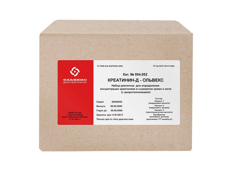 Креатинин-Д-Ольвекс. Набор реагентов для определения содержания креатинина в сыворотке (плазме) крови и моче (с депротеинизацией), 1*200 мл 004.002