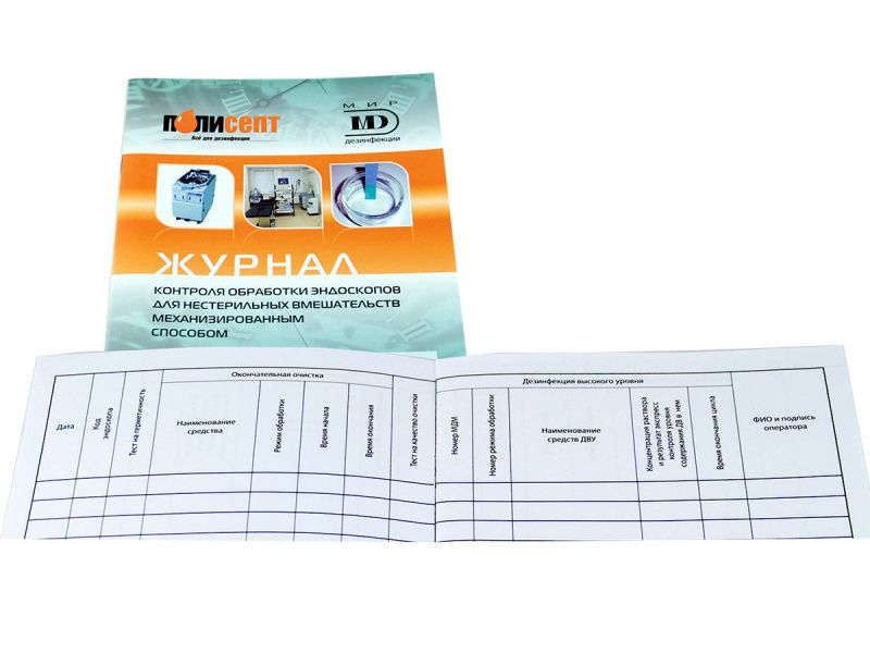 Журнал контроля обработки эндоскопов для нестерильных вмешательств механизированным способом, формат А5, 12 страниц, Россия (ООО "Мир дезинфекции"/ООО "Полисепт")