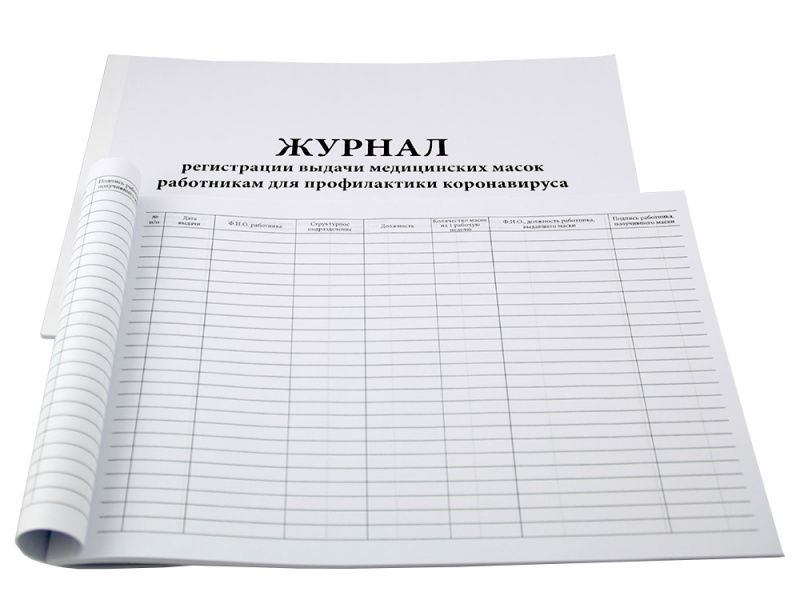 Журнал регистрации выдачи медицинских масок работникам для профилактики коронавируса, формат А4 (60 страниц), Россия (ООО "Профбланк")
