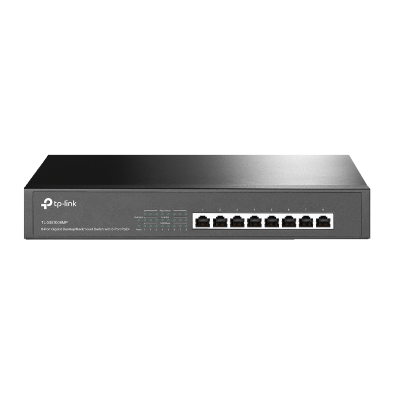 TP-Link SG1008MP Неуправляемый 8-портовый настольный/монтируемый в стойку гигабитный коммутатор с 8 портами PoE+ , бюджет 126Вт