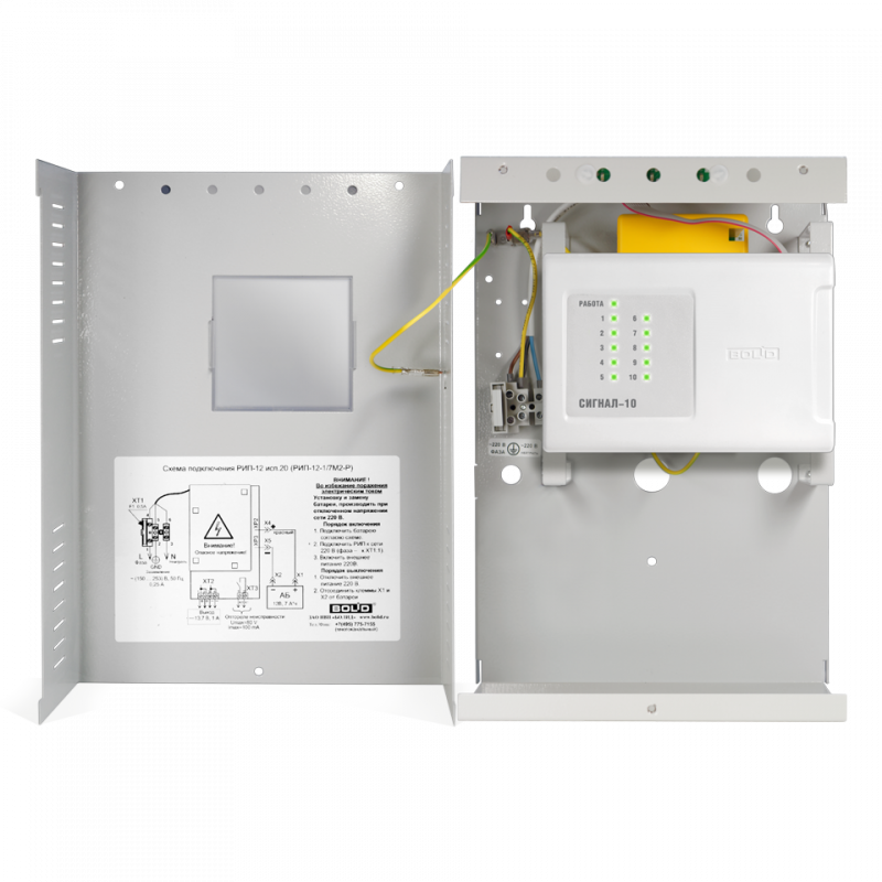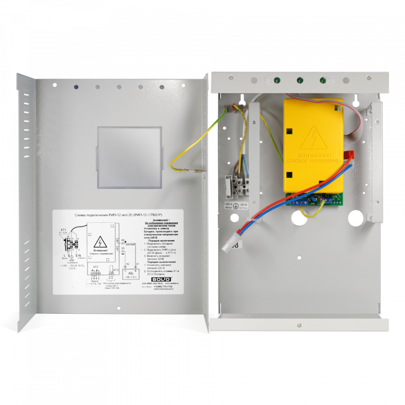 РИП-12 исп.20 (РИП-12-1/7М2-Р) Резервированный источник питания с микропроцессорным управлением, 12 В, 1 А (2 мин-1,5 А), емкость 7 Ач (без аккумулятора). Металлический корпус со стеклом
