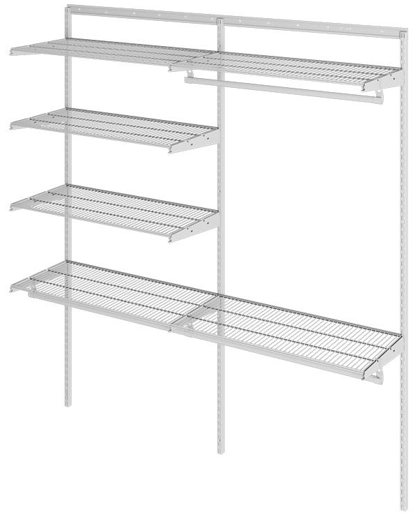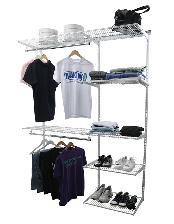Рельс несущий ПРАКТИК Home GR-95 белый – 2 шт. Стойка ПРАКТИК Home GS-100 белая – 6 шт. Соединитель стоек ПРАКТИК Home GSC белый – 3 шт. Полка сетчатая ПРАКТИК Home GSh 90х40 белая – 6 шт. Кронштейн полки ПРАКТИК Home GBr-40 белый – 10 шт. Кронштейн штанги ПРАКТИК Home GRB белый – 5 шт. Штанга ПРАКТИК Home GR-90 – 3 шт. Соединитель штанг ПРАКТИК Home GRC – 1 шт. Комплект заглушек штанги (2 шт) ПРАКТИК Home GRP – 2 шт.