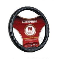 Чехол на руль "AUTOPROFI" AP-765 BK (M) кожа, гладкая, глянцевая, ребристая, черный
