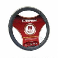 Чехол на руль "AUTOPROFI" AP-150BK/BK (M) кожа, вставки из искуственной кожи, хром, кольца, черный