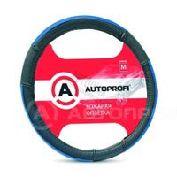 Чехол на руль "AUTOPROFI" AP-678BK/BL (M) натуральная кожа, 3 цветные вставки, черный/синий