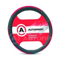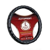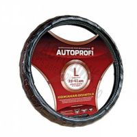 Чехол на руль "AUTOPROFI" AP-765 BK (L) кожа, гладкая, глянцевая, ребристая, черный