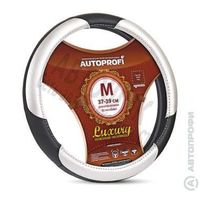 Чехол на руль "AUTOPROFI Luxury" AP-1010BK/SILVER (M) натурал кожа, 3 цветные вставк, черный/серебро