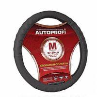 Чехол на руль "AUTOPROFI" AP-300 BK (M) натуральная кожа, протектор елочкой, черный