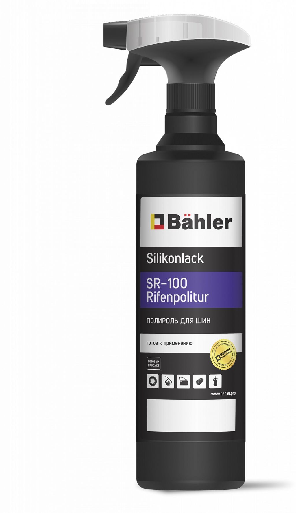 Профессиональный чернитель резины на основе силикона. Применяется для ухода за шинами, молдингами, резиновыми ковриками и прочими резиновыми элементами автомобиля. Защищает резину от агрессивного воздействия дорожных загрязнений. Придает резиновым элементам автомобиля эластичность и мягкость, препятствует старению и высыханию резины, предотвращает образование микротрещин. Придает резине глубокий черный цвет и легкий блеск. Обладает антистатическим эффектом, создает защитный водо- и грязеотталкивающий слой на обработанной поверхности. Длительный эффект чернения устойчив к дождям и мойкам. Защищает от УФ-лучей.