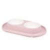 Миска пластиковая Лекси двойная на подставке = 300мл розовая 355*215*50мм Альтернатива