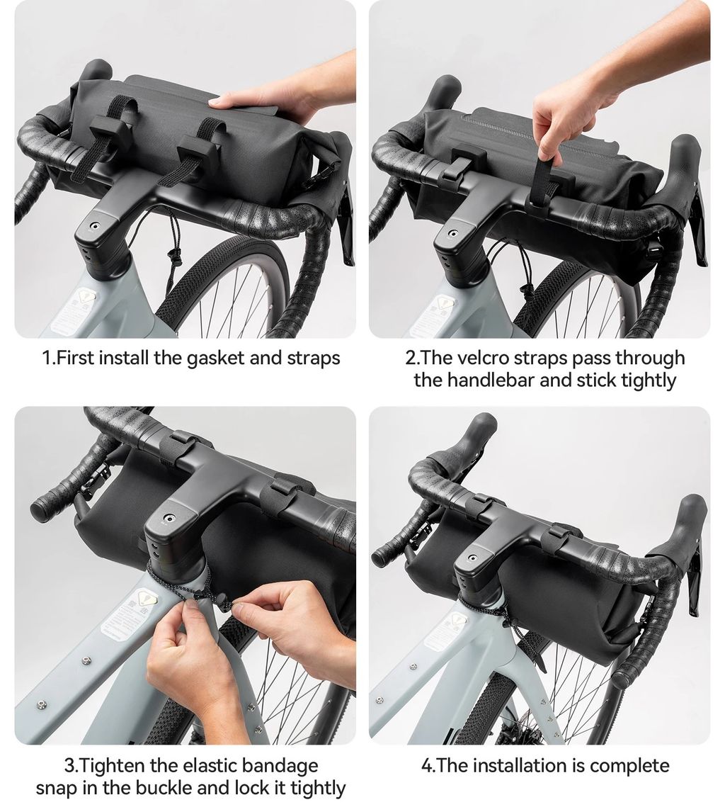 Влагозащищённая сумка, устанавливается на руль с помощью ремней. Сумка имеет центральный карман на молнии и основной отсек. Максимальный вес: 6 кг Материал 840D