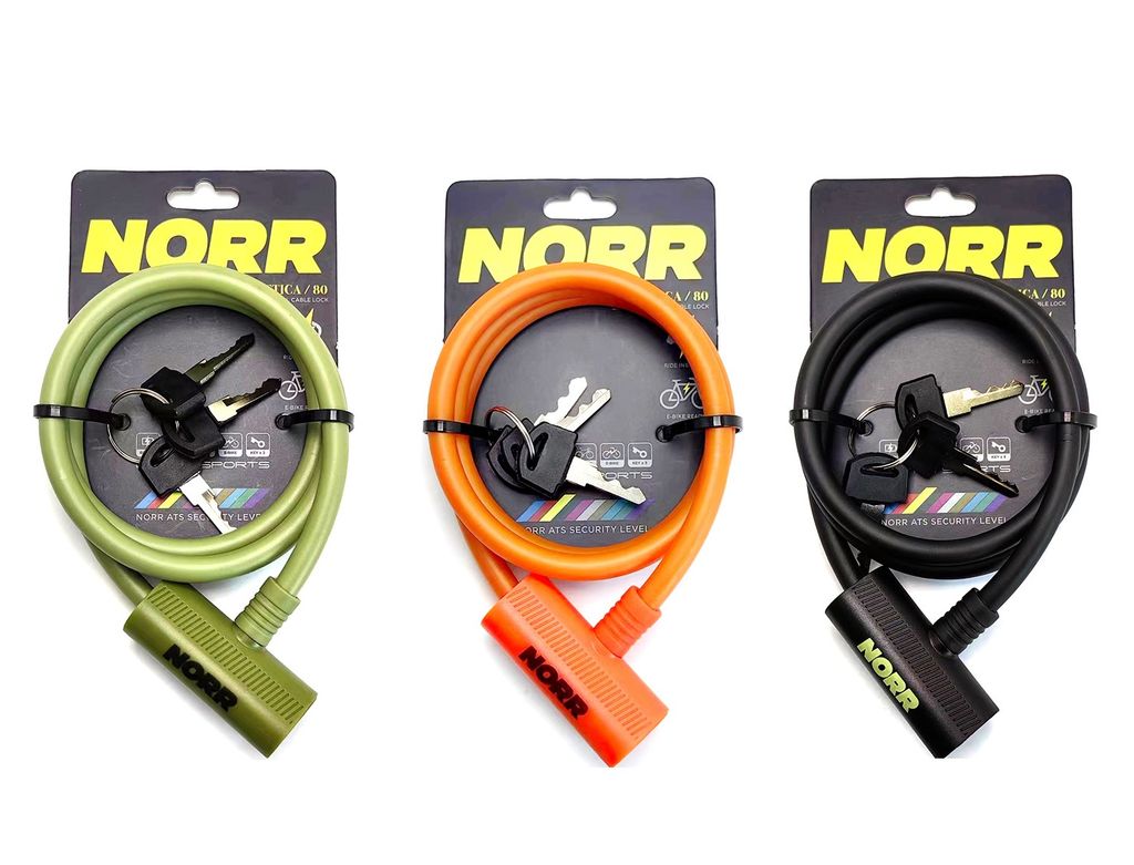 Противоугонный трос.8 мм *80 см Трос NORR NR10180 имеет компактный размер и низкий вес, без проблем поместится в рюкзаке или вело сумке. В комплекте : 3 ключа Крепление к велосипеду Вес: 125 гр