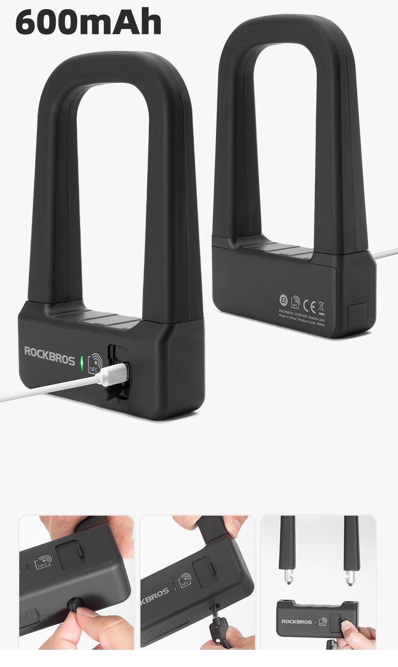 Противоугонный замок ROCKBROS RBNS1 с датчиком NFC, в комплекте 2 карты и жетон так же можно настроить телефон, проблема с запоминанием пароля и потерей ключа решена. Но ключ идет в комплекте для ситуаций если нет возможности зарядить или потери карт.
