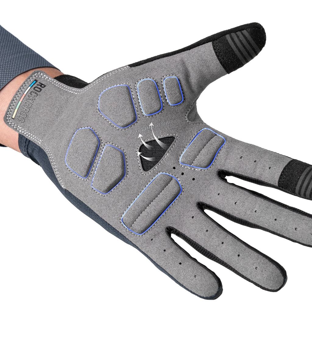 Перчатки премиальной линейки ROCKBROS, Road to SkyЮ выполнены из легкого дышащего материала сверху, и износостойкого мягкого материала снизу, нежная часть снабжена вставками SBR для поглощения вибрации и лучшего комфорта.