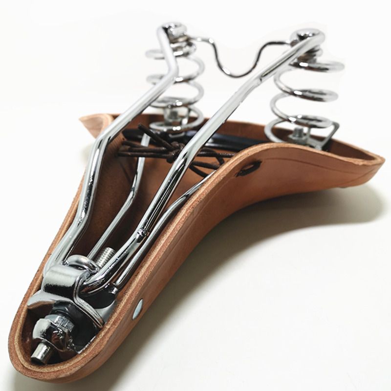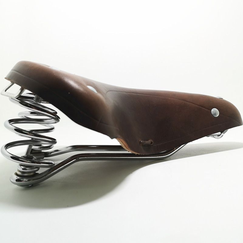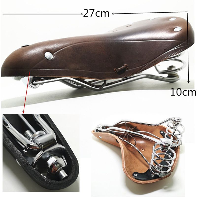 Кожаное седло со временем принимает форму ваших седалищных костей, при этом достигается комфорт при катании, также у седла 2 больших пружины поглощающие вибрации при катании. Вес: 800 гр Размер 28*18 мм
