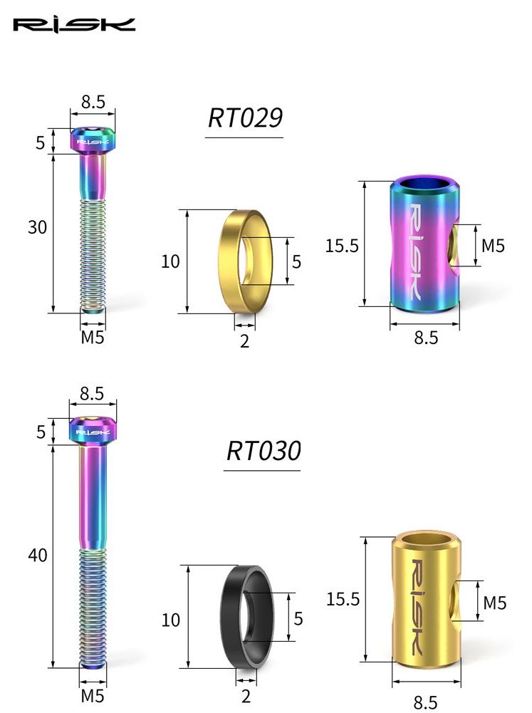 Болты титановые RISK RT030 M5*40мм для подседельных штырей Комплект:2 ШТ