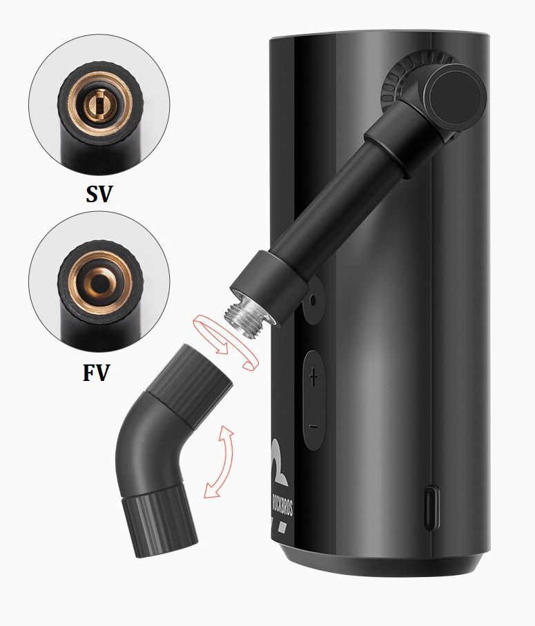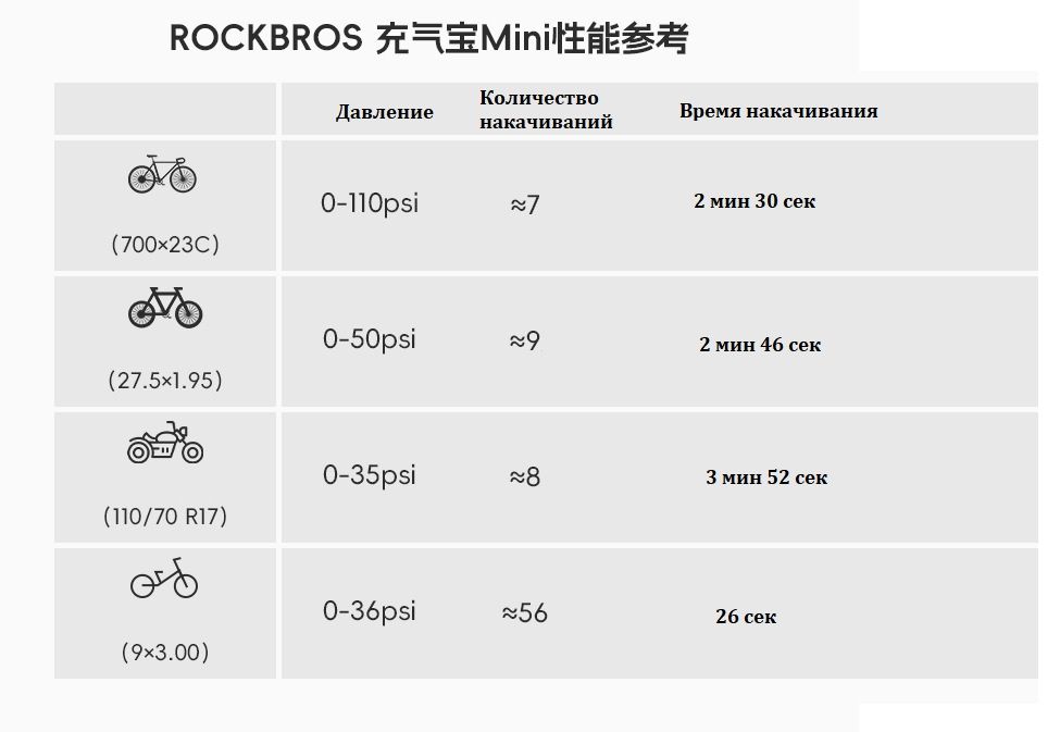 - Ниппель Presta и Schrader Максимальное давление 150 psi Размер 107*65*38 мм Зарядка через Type-C 5V 1.5A Батарея: 5000 mAh Комплектация: кабель для зарядки.