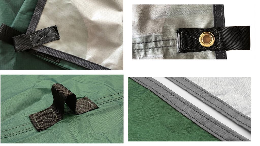 - Ткань из полиэстера 210T с серебряным покрытием на тыльной стороне обеспечивает хорошую защиту от солнца и блокирует более 90% ультрафиолетовых лучей (UV50+).